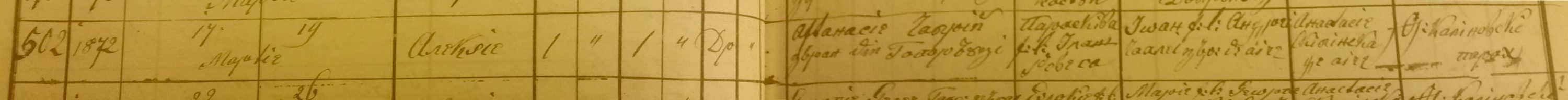 Aleksie was born on March 17, 1872. Father – Aftansie Chebrii. Mother – Paraschiva, daoughter of Ilash Revega.
