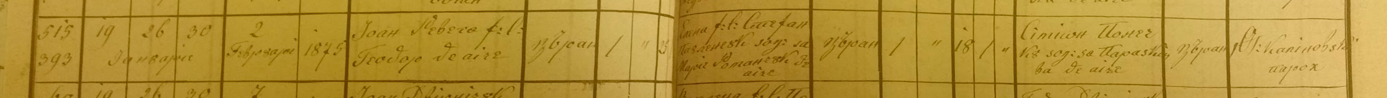 Ioan Revega and Elena Paulenciuk marrieage record. Feb.2, 1875.
