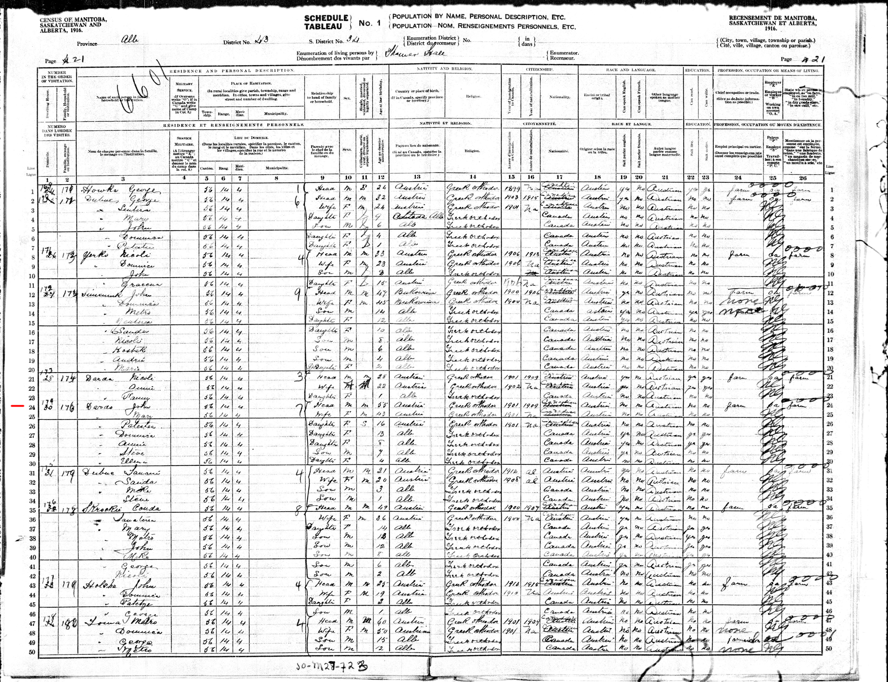 Finally arriving in the Boian area, Ion filed for a quarter of land N.W. 14-56-14-4. Once the family was settled, Ion went to work on the railroad track to earn money for the upkeep of his family. He had health problems all his life as his stomach constantly ached, and in 1916 at the age of 60, he passed away. Marina, now a widow farmed with her son Mihai, moved twice, finally settling in the Deep Lake area, near the south bank of the North Saskatchewan River.