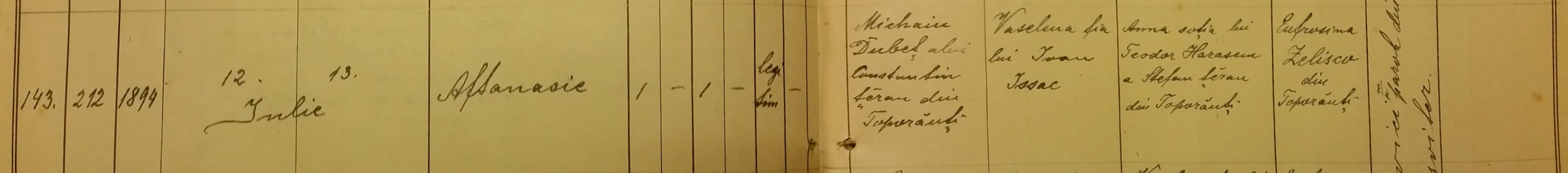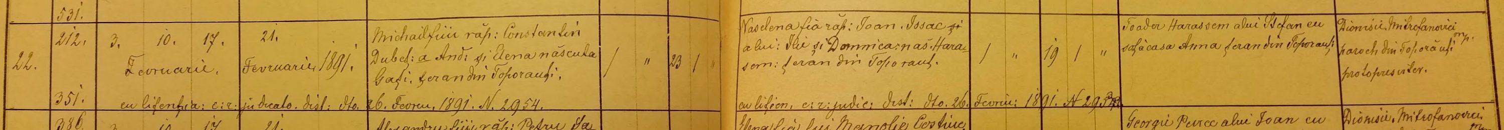 Mihai, son of Constantin, son of Andrei Dubetz married Vaselena, daughter of Ioan, son of Ilie Issac and Domnica Harasem. Mihai was 23 and Vaselena 19 years old.