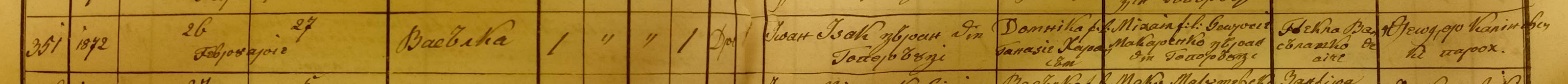 Vasilca was born on Feb.26 1872. Father – Iwan Isak. Mother – Domnica, daughter of Tanasie Harasem.