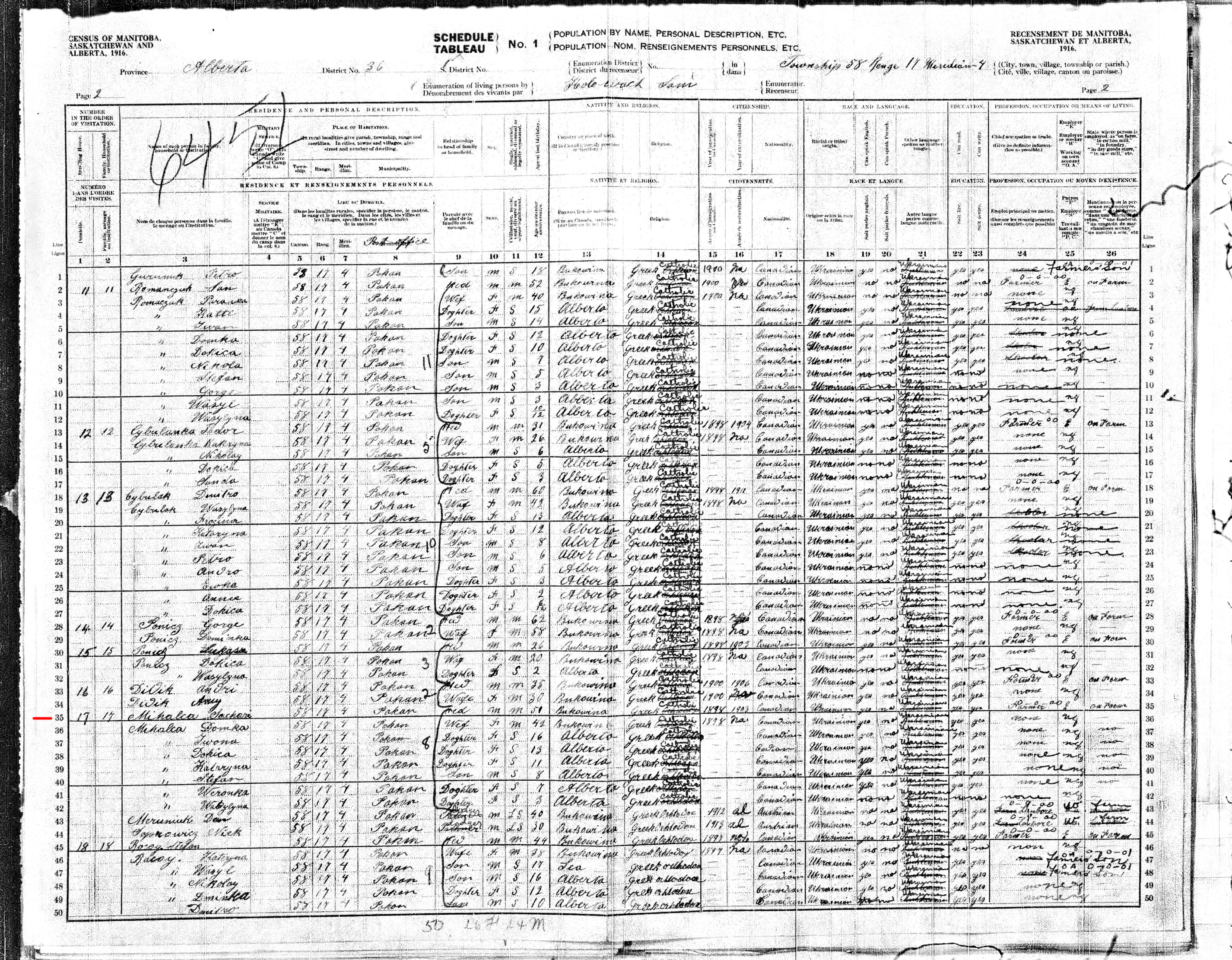 Zaharie Mihalcheon was born in 1866 in Boian, Bukovina. His wife, Domnica Marițak, was born in 1872 also in Boian. They were married in 1888 and had four children in the old country – Alexander who died in infancy, Sarah, Maria and Sanda. In 1899 the family emigrated to Canada along with other families from the same villages.