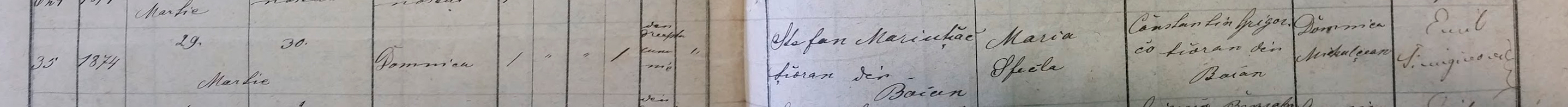 Domnica was born Mart 29, 1874. Father – Stefan Marutac. Mother – Maria Sfecla. Godfather – Constantin Grigorco.