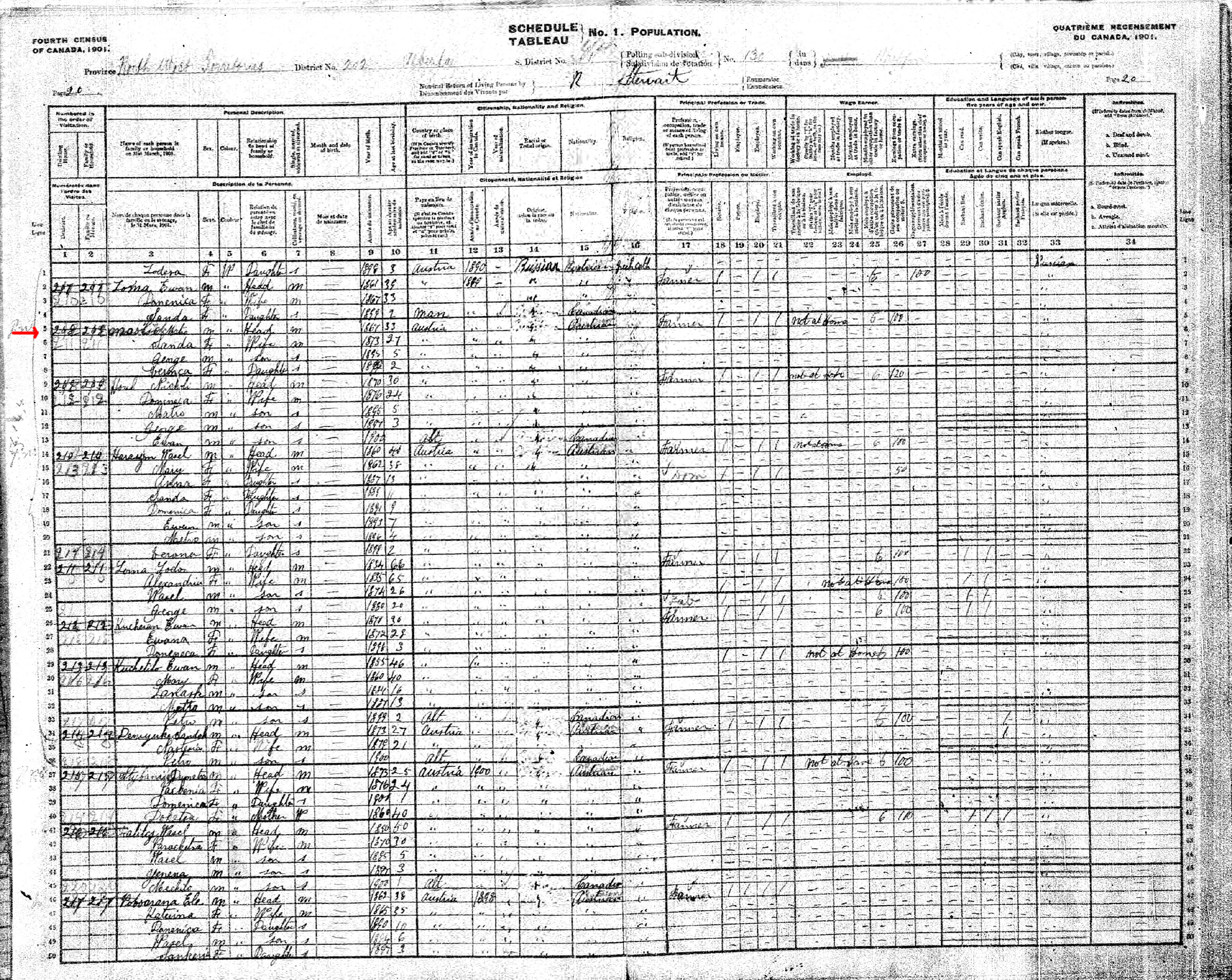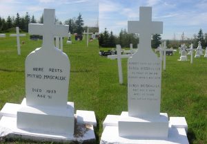 Metru Moskaliuk was born in 1868 in Boian, Bukovina. He married Sanda Falka in 1891 and emigrated to Canada in 1899 with two children, George who was five years old and Vera who was four. At the same time Sanda’s father and her stepmother, the Nikolai Falkas came.