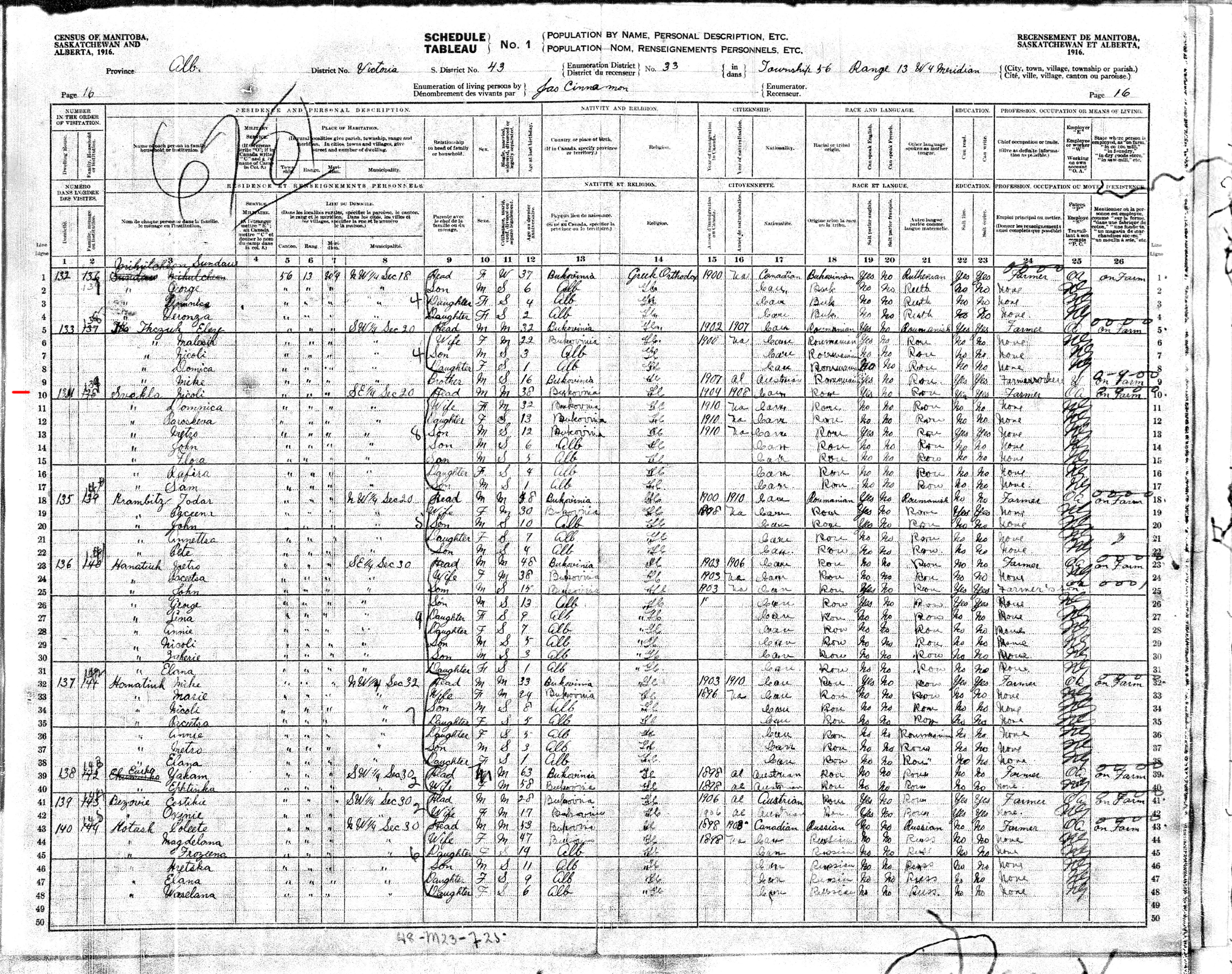 Nicolai Svekla was born in 1877 in Boian, Bucovina. In 1898 he married Domnica daughter of George and Katrina Kebak. Two years later he came to Canada alone, leaving his wife and two children Pearl and Metro behind. He worked, bought land in the Shalka area, built a bordei, then went back to bring his wife and kids to Canada. They farmed, working hard and in 1927 moved to Boian, leaving the home place to the oldest son. Domnica was a very sociable woman and she worked hard weaving tapestry and hand bags and selling them in Vegreville. With the hard earned money she bought clothing and groceries. In all, they raised a family of nine children.