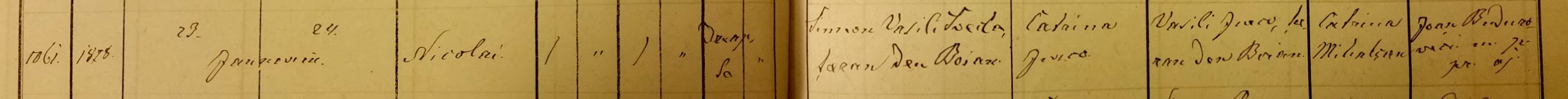 Nicolai was born on Jan. 23, 1878. Father – Simion, son of Vasile Svecla. Mother – Catrina Iurco. Godfather – Vasile Iurco. (Niclolai and Vasile Svecla were brothers)