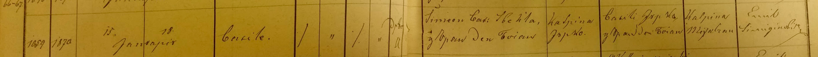 Catrina was born on Jan. 10, 1847. Father – Ilie, son of Kasian Mihalcean. Mother – Alexandra. Godmother – Anna, wife of Simeon, son of Toader Basaraba.